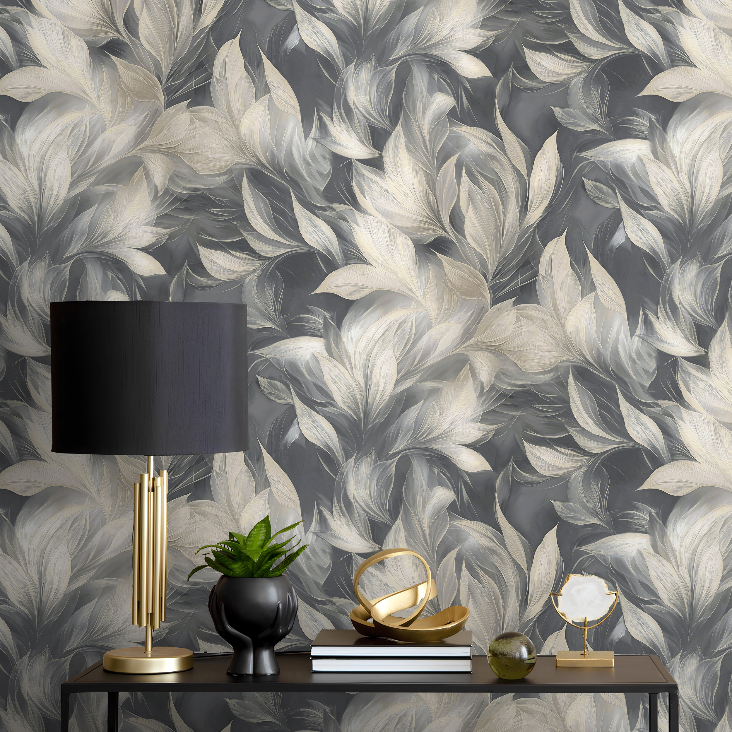 Вихрь из нежных лепестков и листьев увлекает за собой, подчеркивая элегантность и плавность форм. Гармоничное сочетание оттенков излучает уют и тепло. Использование металлизированного эффекта придает рисунку легкий эффект патины. Освещение в теплом спектре с возможностью регулировки яркости поможет лучше раскрыть достоинства коллекции и будет способствовать созданию приятной, расслабляющей атмосферы.