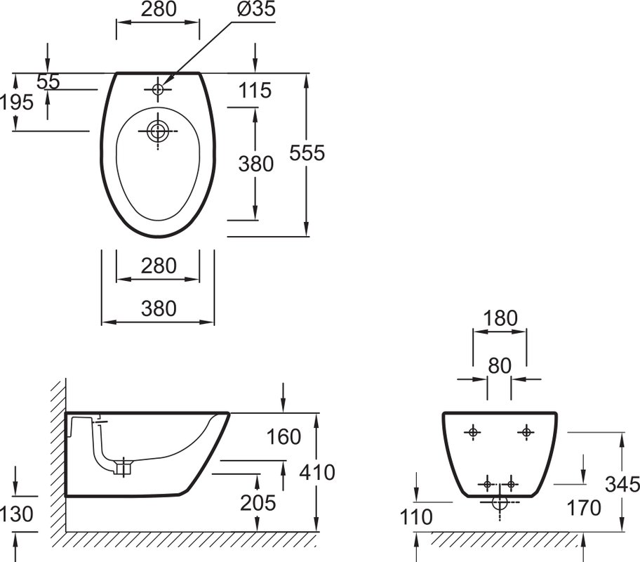 Presqu`ile Биде подвесной 55х38, белое